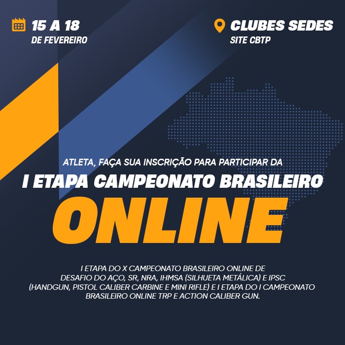 Estão abertas as inscrições para a I Etapa do X Campeonato Brasileiro Online de Desafio do Aço, NRA e I Etapa do I Campeonato Brasileiro Online TRP e Action Caliber Gun.